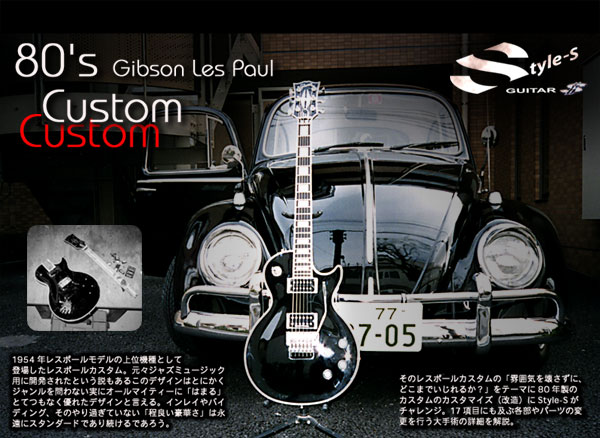 本来LP CTMはゴールドパーツが標準であり、ラッカー塗装の経年変化でバインディングが「黄ばむ」事で絶妙な美しさが現れる。今回Style-Sは全てをクロームメッキパーツに変更し、バインディングの「黄ばみ」も起きないようポリウレタン塗装を使用し、モノトーンの外観をイメージしたコンセプトでまとめました。標準仕様に対し、CUSTOM感を出すため、殆どのパーツをリセスマウントにして、いわゆる「取って付けた」感を出来るだけ無くし、パーツ各々の為に作られたボディー設計である点を強調しました。可能な限り「ビス」を減らし専用ボルトでのマウント(裏パネル、ジャック部等)にも変更しています。